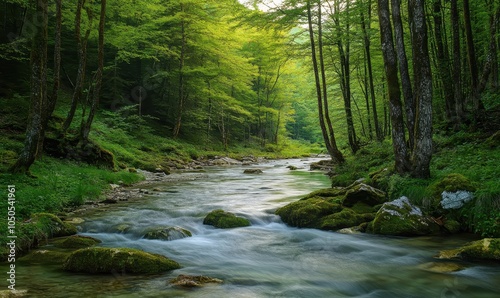 Obraz premium River meandering through green forest