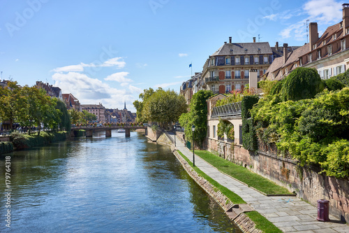 Fototapeta premium River of Strasbourg in Alsace, France / Traditional colorful houses at river...