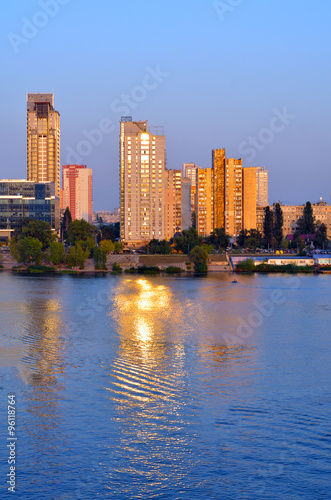 © veronika_synenko, Fototapeta premium River port and bridge on a river Dnepr