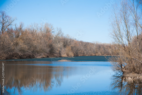 Fototapeta premium River quietly flowing flows through the forest in early spring