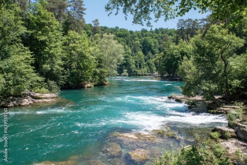 © Titik, Obraz premium River Rapids Through Lush Green Forest