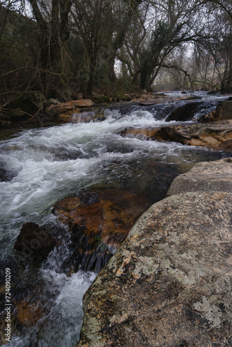 © Piotr, Naklejka premium river, stream, rushing, water, nature, plants, trees, stones, cl