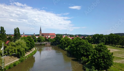 © Dali, Fototapeta premium River town aerial view, summer day