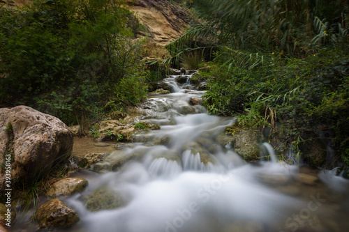 © JMDuran Photography, Obraz premium River water flows among the rocks and forms small waterfalls, Bullas, Murcia, Spain
