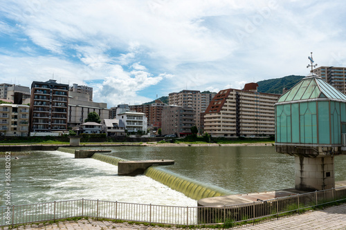 © Kazu, Obraz premium River weir on Muko river in Takarazuka, Hyogo, Japan