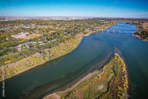 © Scott Prokop, Fototapeta premium River with a bridge over it and a city in the background