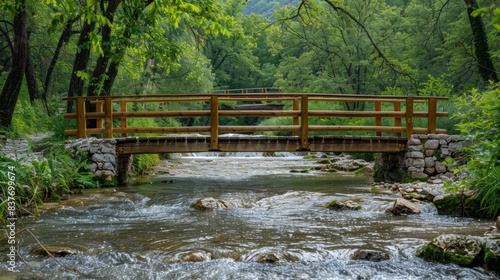 Obraz premium River with Wooden Bridge