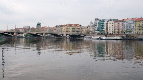 Obraz premium Riverside and bridge in Prague and flood threat.