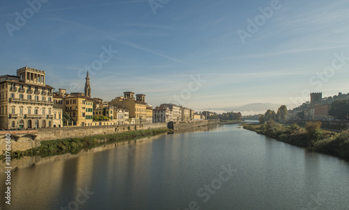Fototapeta premium Riverside in Florence with water reflections
