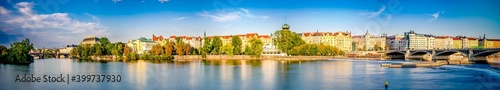 © Pawel Pajor, Obraz premium Riverside panorama of Prague in Czech Republic