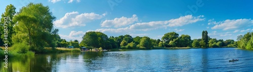 © Hifzhan Graphics, Obraz premium Riverside Picnic, a peaceful riverside scene with people having a summer picnic