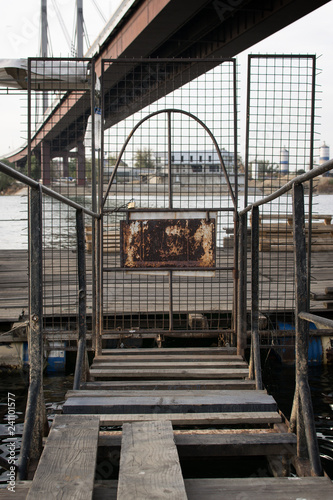 © bradaricpublic, Fototapeta premium Riverside view, boat, river, bridge