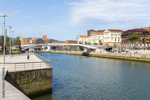 © Noradoa, Fototapeta premium Riverside walk along Nervion and Deusto university, Bilbao (Spain)