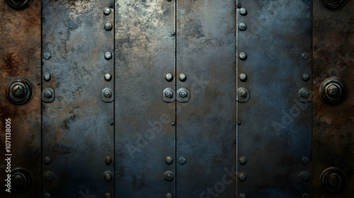 Fototapeta premium Riveted Metal Background: a rustic metal background adorned with rivets and a...