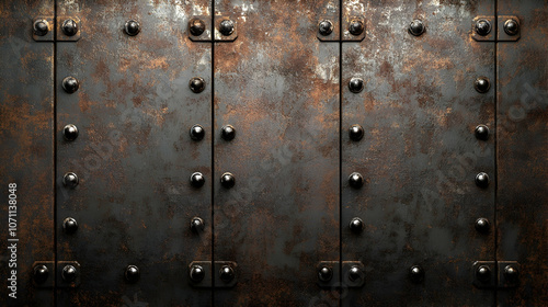 Fototapeta premium Riveted Metal Background: a rustic metal background adorned with rivets and a...