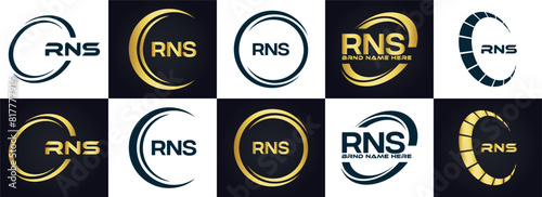 © MdRakibul, Naklejka premium RNS logo. R N S design. White RNS letter. RNS, R N S letter logo design. R N S letter logo design in FIVE, FOUR, THREE, style. letter logo set in one artboard. R N S letter logo vector design.