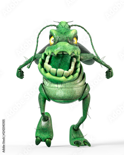 © DM7, Obraz premium roach bug cartoon is walking to you on white background