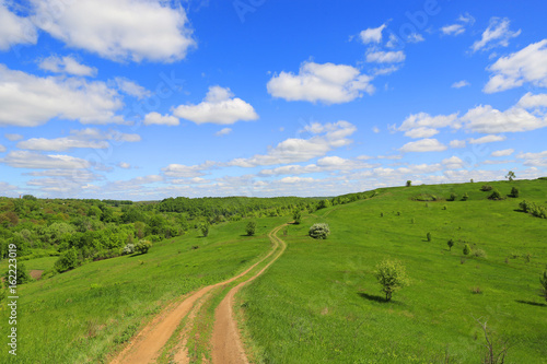 © Pavlo Klymenko, Fototapeta premium road across green hill