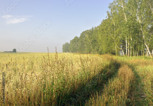 © ArhSib, Fototapeta premium Road along an agricultural field