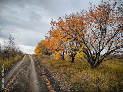 Obraz premium road along the autumn forest. High quality photo