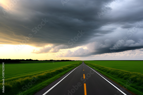© Floor, Fototapeta premium Road Amidst Field Against Cloudy Sky