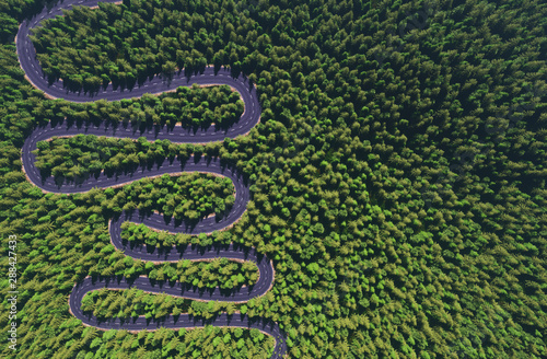 © evgeniy, Obraz premium road among the forest, top view, comparison of the river arteries 3d render