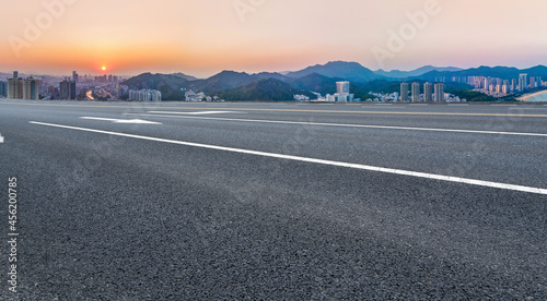 © zhouyilu, Fototapeta premium Road and city buildings background