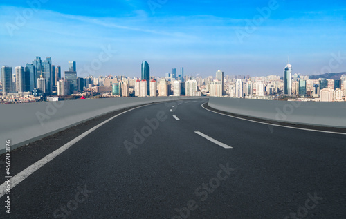 © zhouyilu, Fototapeta premium Road and city buildings background