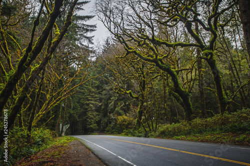 © stuckshutter, Fototapeta premium Road and Mossy Trees in the Fog