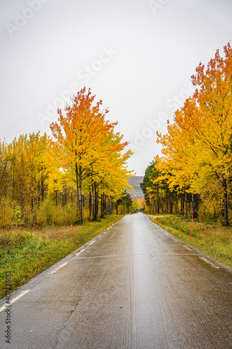© Fridimedia, Fototapeta premium Road at bright yellow trees in Norway
