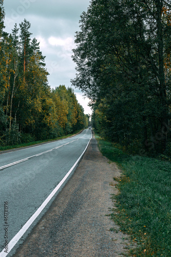 Naklejka premium Road. Beautiful foreshortenings of the road. Double solid. Dividing strip....
