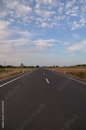 © Raul, Fototapeta premium Road between wheat fields before harvest,