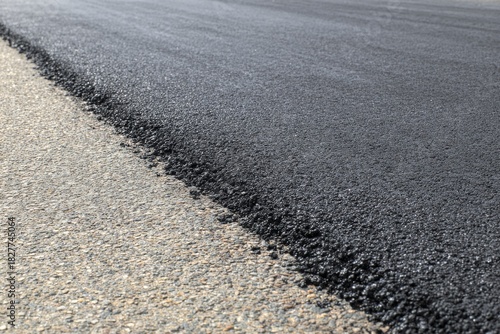 © Ilia K, Naklejka premium Road construction with freshly laid asphalt and smooth surface providing durability and safety