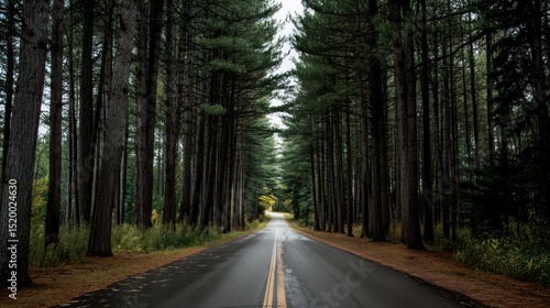 Obraz premium Road Disappearing into the Distance Among Tall Pines