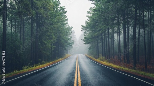 © wudu_8, Fototapeta premium Road disappearing into the distance among tall pines