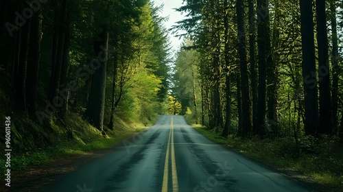 Fototapeta premium Road disappearing into the distance among tall pines, endless possibilities