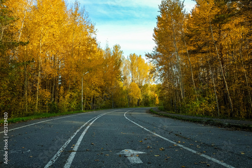 © NordCry, Fototapeta premium Road for running with nobody in autumn park