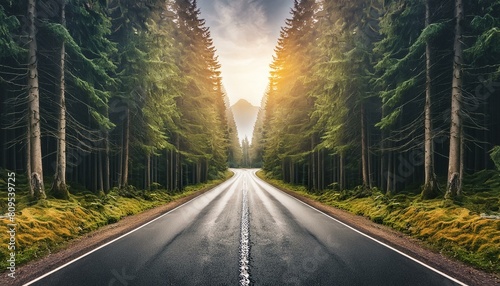 Obraz premium road, forest, highway, asphalt, travel, nature, landscape