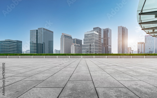© zhouyilu, Fototapeta premium Road ground and urban architectural landscape