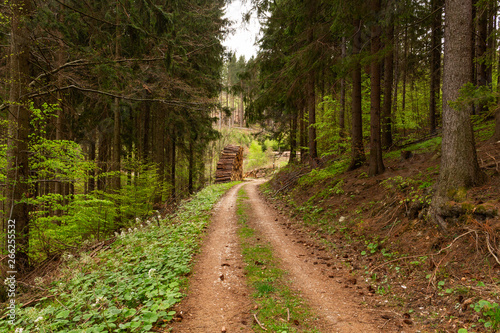 © Roman's portfolio, Fototapeta premium Road in a beautiful forest in the morning