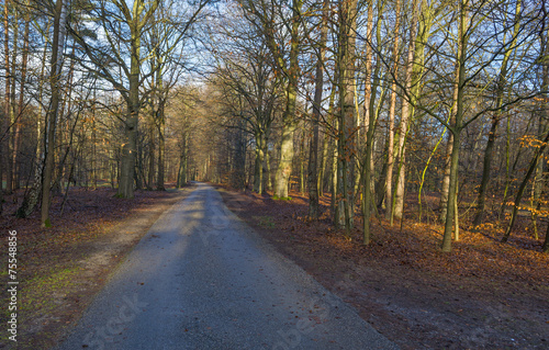 Naklejka premium Road in a beech forest in winter