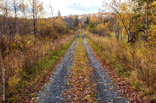 © dg_basiove104, Fototapeta premium road in a fall forest