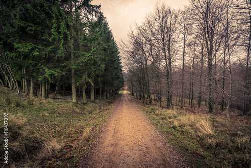 Obraz premium Road in a forest at dawn