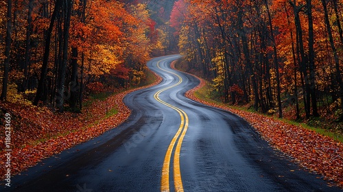 © Fatoniyah, Fototapeta premium road in autumn forest