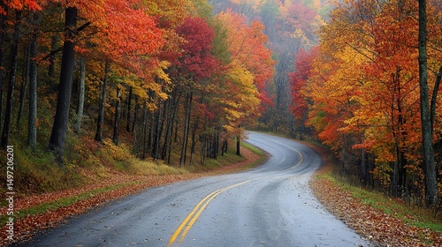 © wen, Obraz premium road in autumn forest