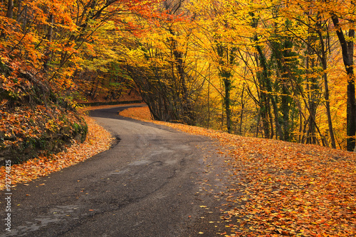 © biletskiyevgeniy.com, Fototapeta premium Road in autumn forest. Autumn landscape