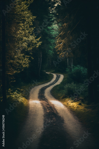 Obraz premium Road in magic forest. Illustrator AI Generative
