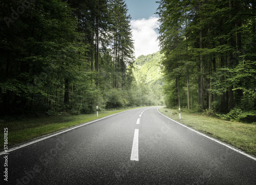 © Iakov Kalinin, Fototapeta premium road in mountain forest, Switzerland