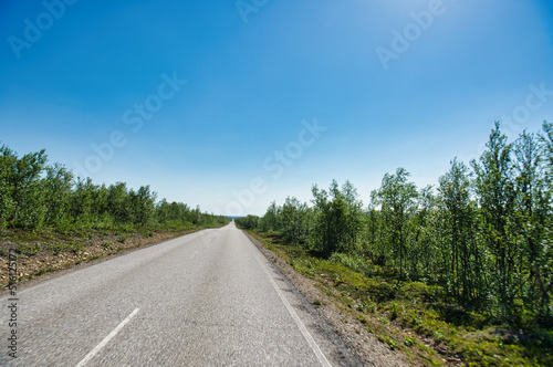Fototapeta premium Road in nice weather in Finnmark, Finland