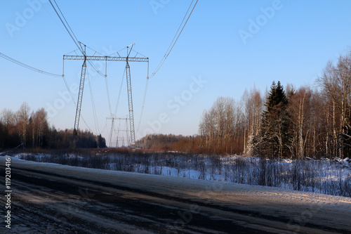 Fototapeta premium Road in snow in cold winter day